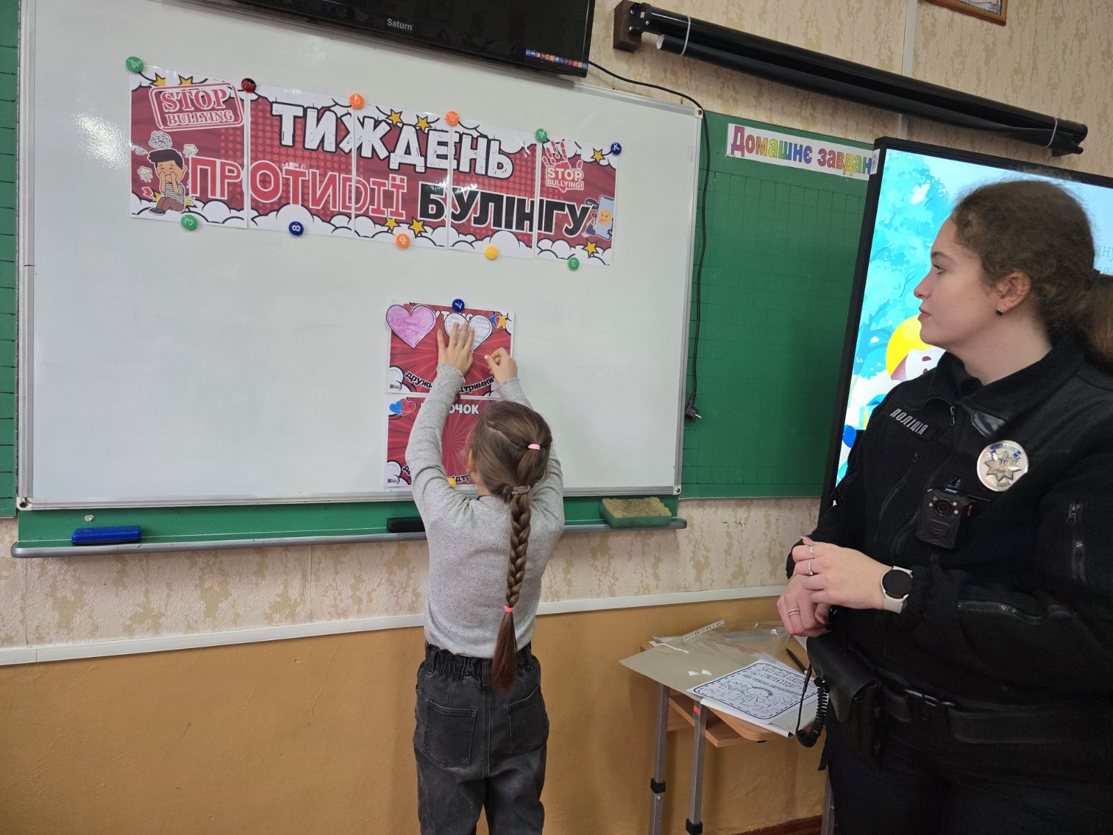 Перший четвер листопада – це Міжнародний день боротьби з насильством і булінгом у закладах освіти. Інспектором відділу «Служба освітньої безпеки» Кременчуцького РУП ГУНП в Полтавській області, лейтенантом поліції Іриною МЄДОВОЮ, в Кременчуцькій гімназії 27 було проведено заходи для 1-А класу, 2 класу, 3-А класу та 4-А класу на тему «Країна дружби без булінгу! Дружимо без образ» метою якого було формування у дітей навичок дружнього спілкування, розвиток уміння мирно вирішувати конфліктні ситуації, профілактика проявів булінгу та виховання толерантності, поваги й підтримки один одного у шкільному колективі. Також, було проведено інтерактив і у доступній ігровій формі діти дізналися, що таке дружба та взаємоповага, вчилися розпізнавати прояви образливих дій і шукати мирні способи вирішення непорозумінь. Учні брали участь у вправах «Добрі слова» та «Серця допомоги» та створили «Куточок дружньої підтримки» які допомогли їм зрозуміти важливість підтримки та доброзичливого ставлення один до одного.
